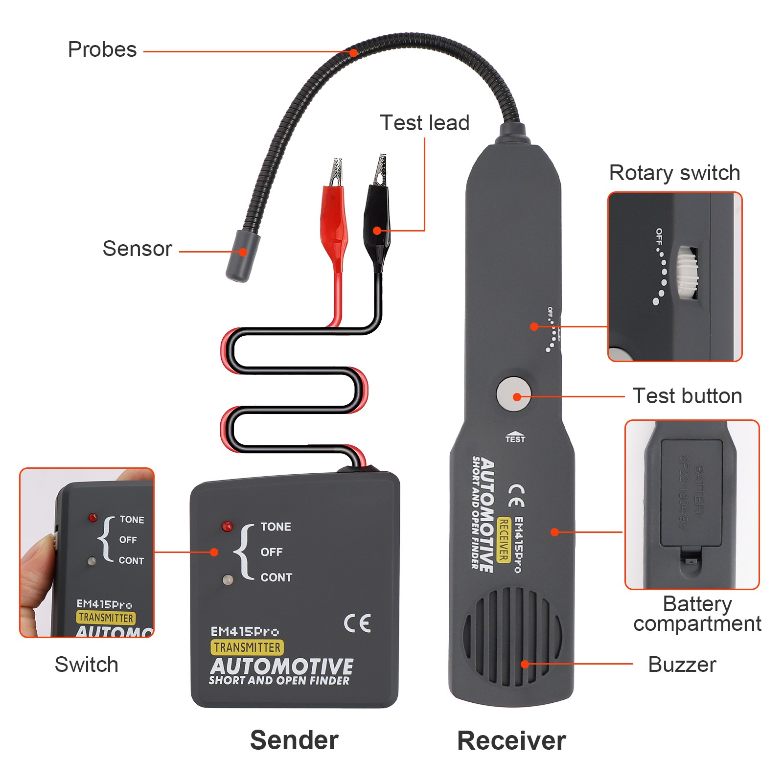 Automotive Short and Open Finder Circuit Tester DC 6-42V Car Wire Tracker Tool