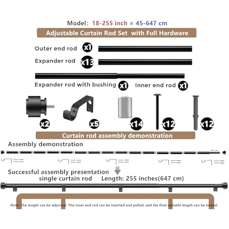 Be the first to review “Black Curtain Rods 300 cm for Window 279 cm, Adjustable Length Heavy Duty Diameter 2.2 cm, Modern Finials” Cancel reply