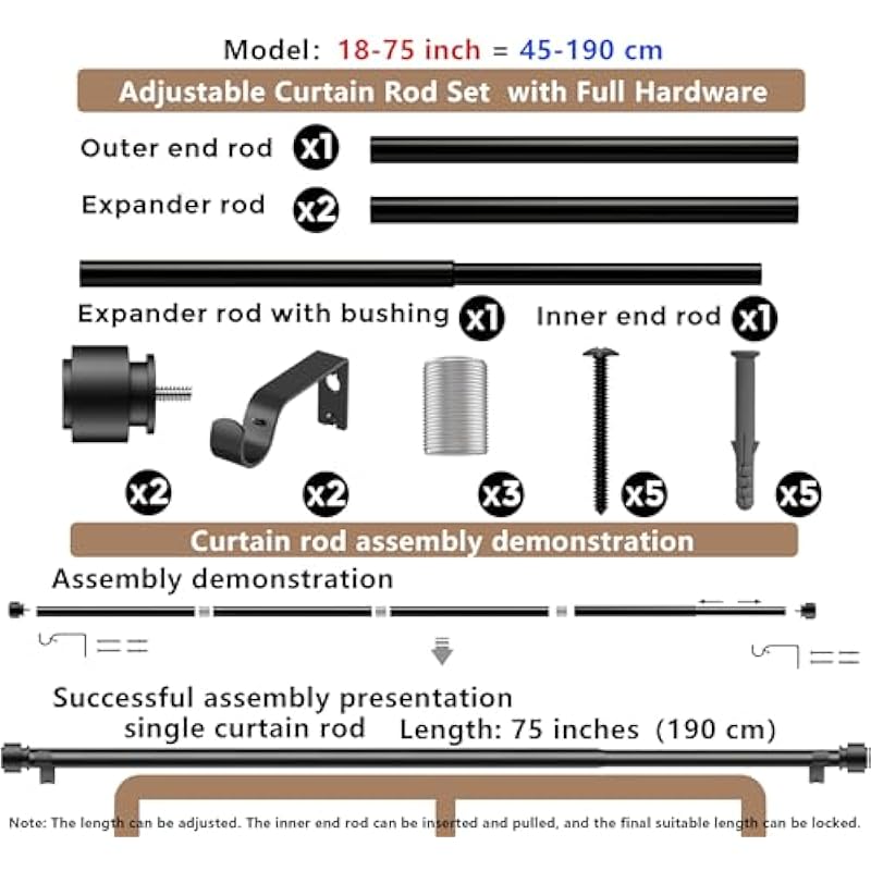 Be the first to review “Black Curtain Rods 300 cm for Window 279 cm, Adjustable Length Heavy Duty Diameter 2.2 cm, Modern Finials” Cancel reply