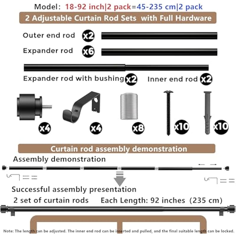 Be the first to review “Black Curtain Rods 300 cm for Window 279 cm, Adjustable Length Heavy Duty Diameter 2.2 cm, Modern Finials” Cancel reply