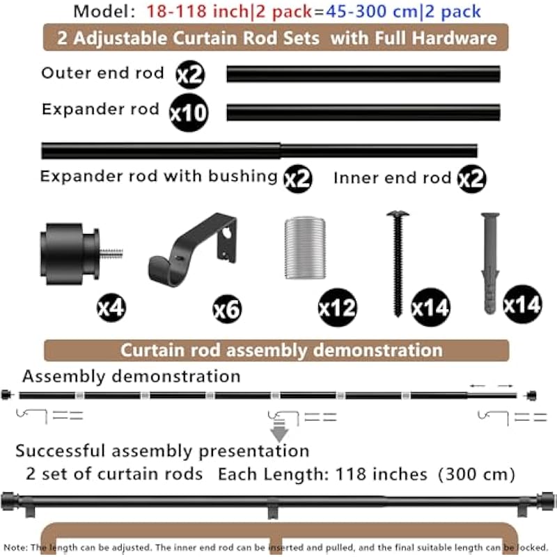 Be the first to review “Black Curtain Rods 300 cm for Window 279 cm, Adjustable Length Heavy Duty Diameter 2.2 cm, Modern Finials” Cancel reply