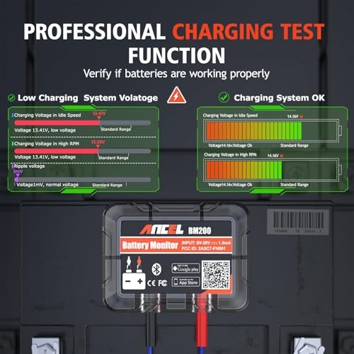 BM200-US Car Battery Tester 12V Automotive Battery Monitor Bluetooth Orange