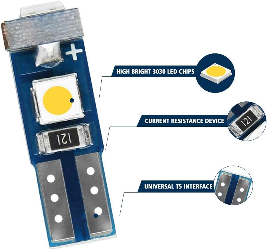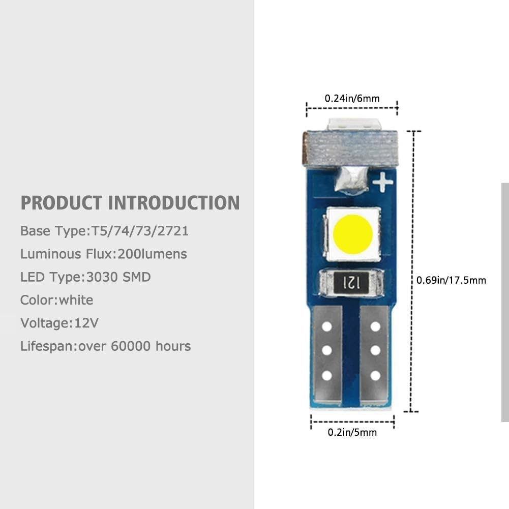 Bright T5 LED Bulbs for Automotive Interior – 6000K White Light (12 Bulbs)