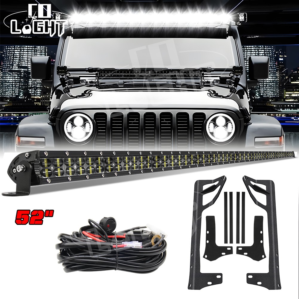 Bumper 52″ 6D Dual-Row LED Light Bar Combo +Bracket+Wire For Jeep Wrangler JK JL