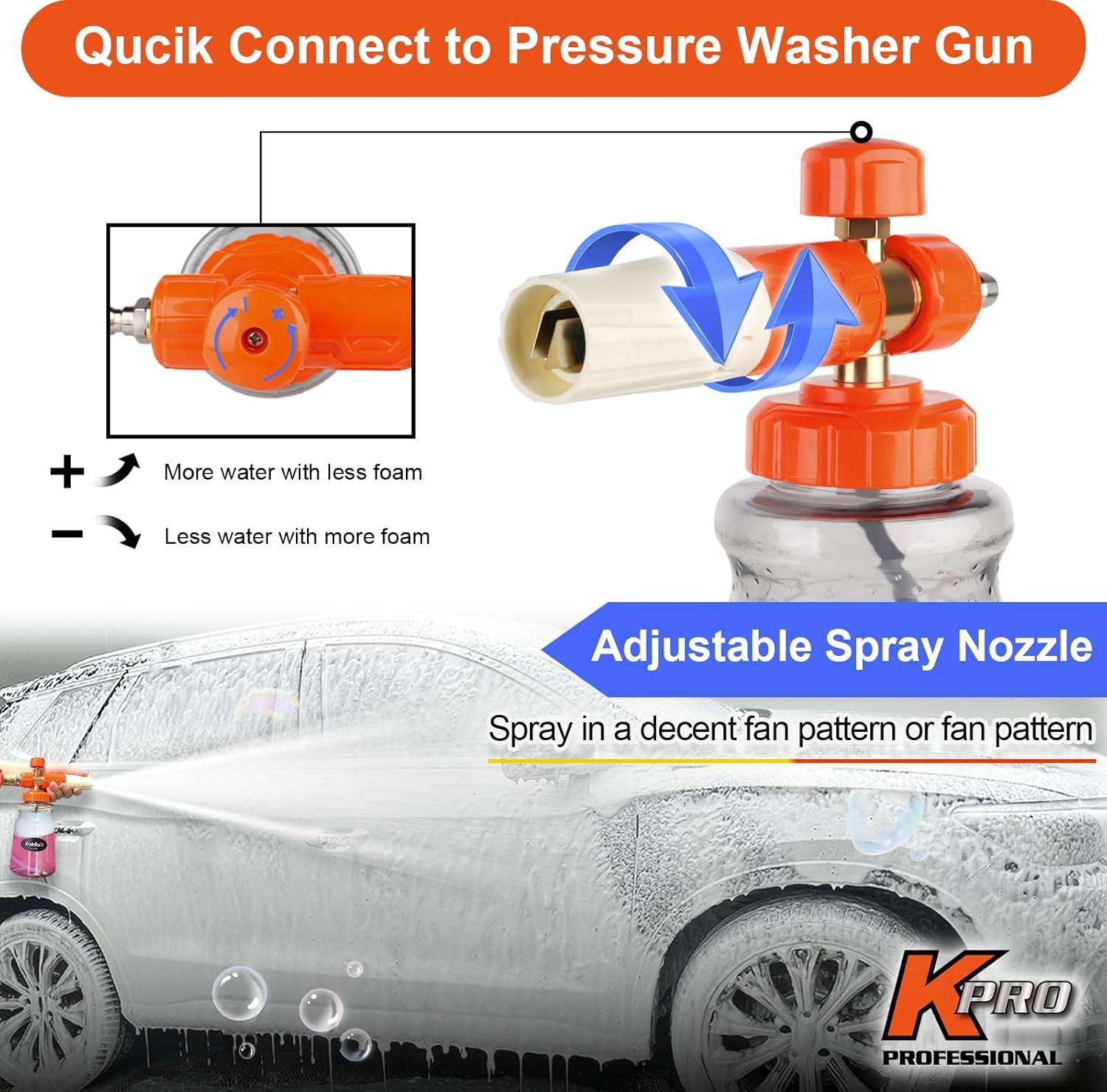 Car Pressure Washer with Foam Gun 5200 PSI, Heavy Duty Brass Snow Foam Cannon Ki