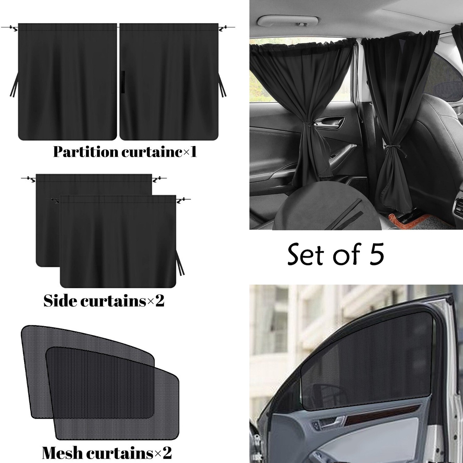 Car Window Shades – 5pcs Privacy Sun Shades Divider Curtain & Side Window Shades