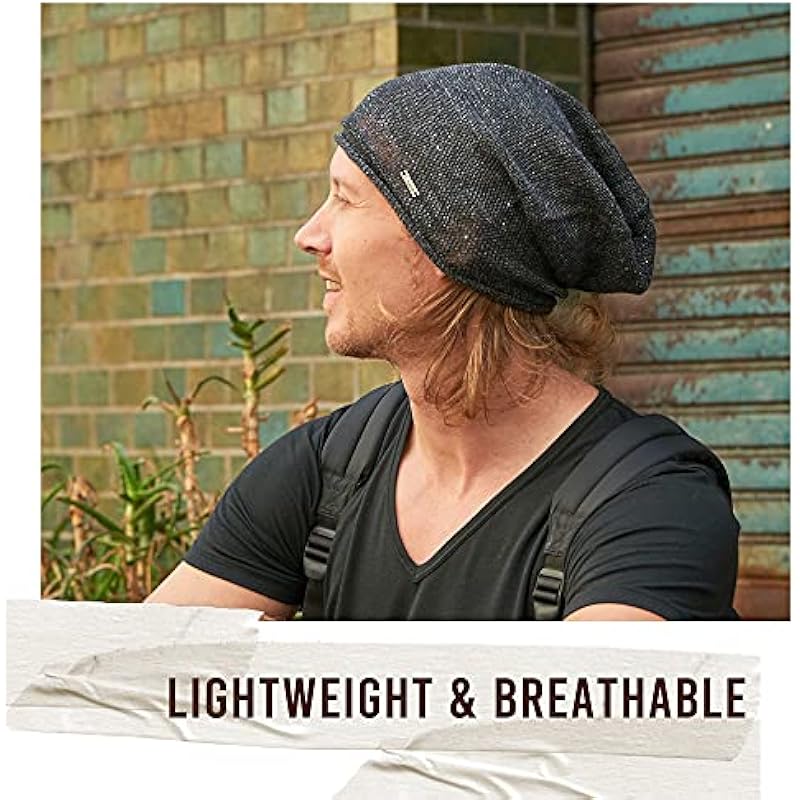 CHARM Linen Beanie Hat Summer Cap – Mens Slouchy Beanie Womens Baggy Knit Cooling Hat