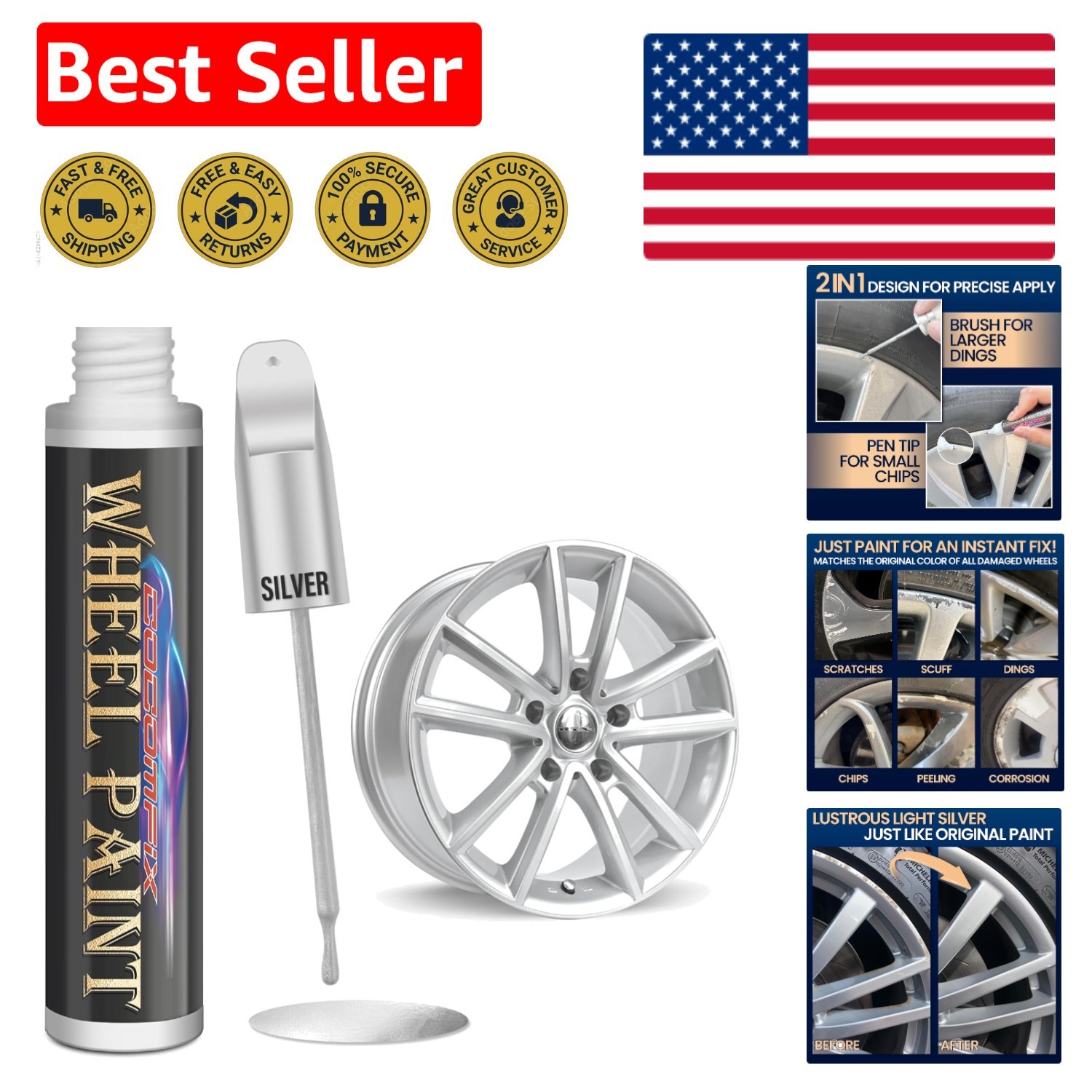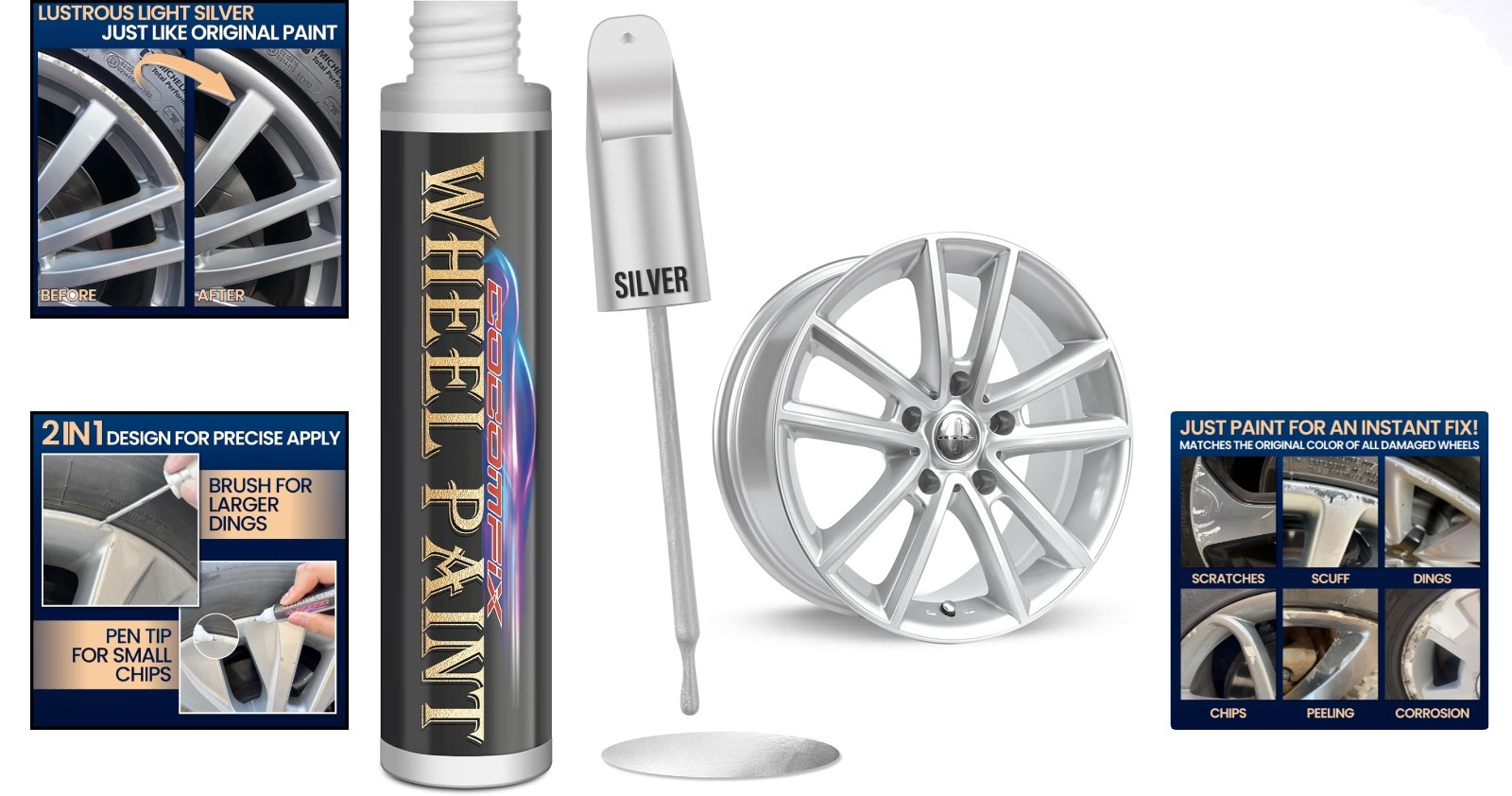 Be the first to review “Chrome Wheel Touch Up Paint Pen – 1 fl oz Light Silver Enamel Repair Solution” Cancel reply