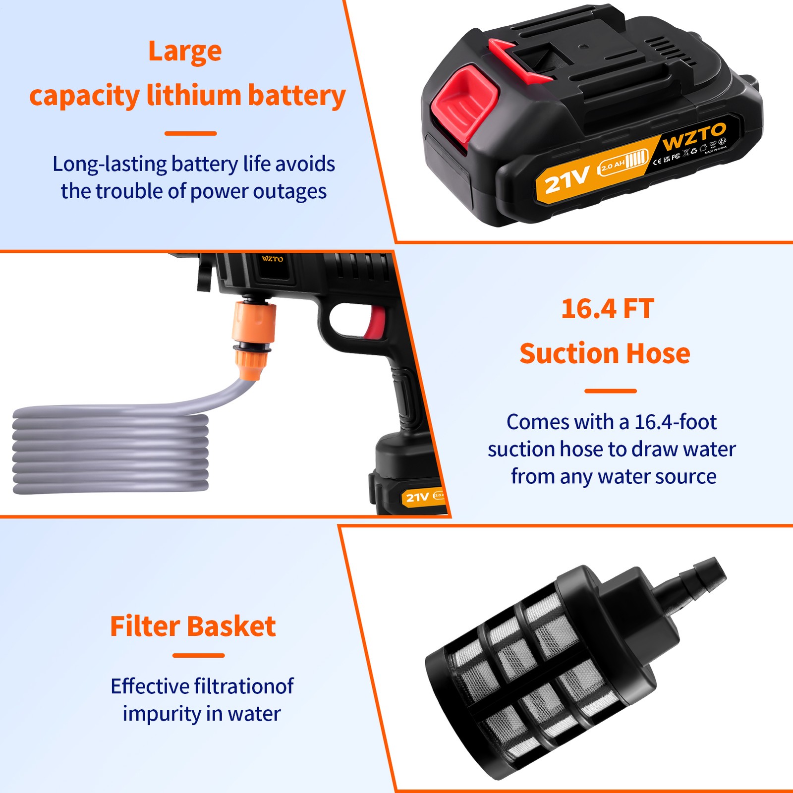 Cordless Electric High Pressure Water Spray Gun Car Washer Portable Cleaner Tool