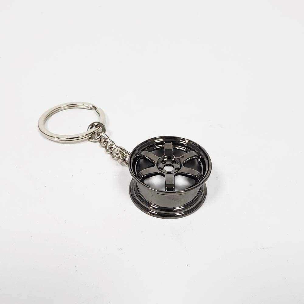 Dark Gray TE37 Six Spoke Wheel Rim Keychain Key Ring Automotive Gift Fidget Toy