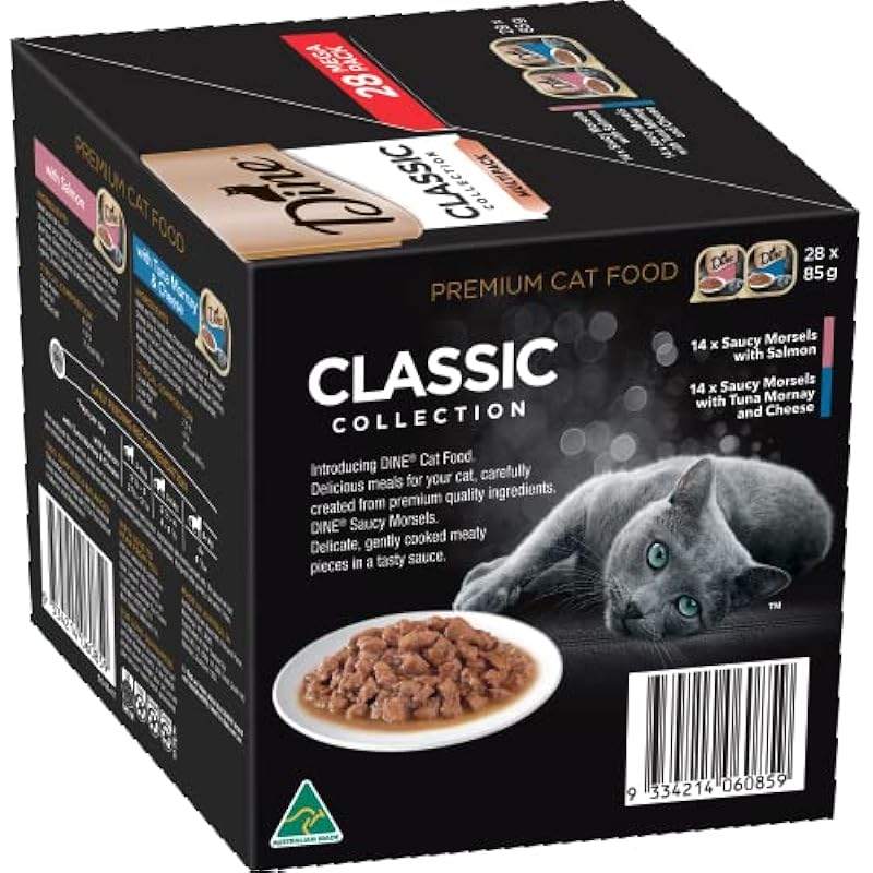 DINE Mixed Multipack Wet Cat Food, Salmon, Saucy Morsels with Tuna, 85 g (Pack of 28)