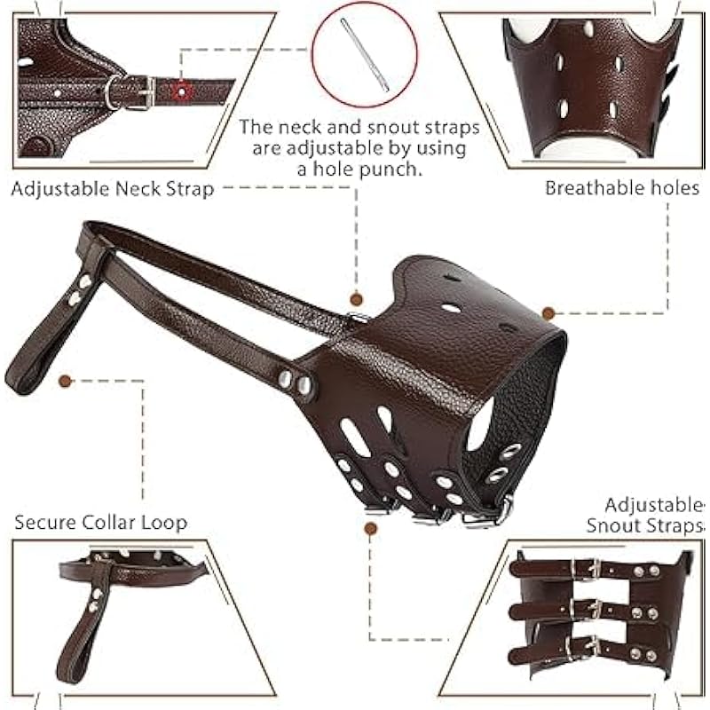 Dog Muzzle Leather, Soft Secure Anti-Barking Leather Muzzle for Small Dogs to Prevent Biting, Breathable and Adjustable, Allows Drinking and Panting, Used with Collars (m)