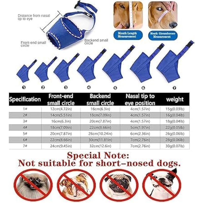 Dog Muzzle Soft and Breathable Prevents Barking, Chewing and Biting Allows Panting and Drinking Pet Supplies for Small, Medium and Large Dogs Suitable for outings, Walks, Training (5#)