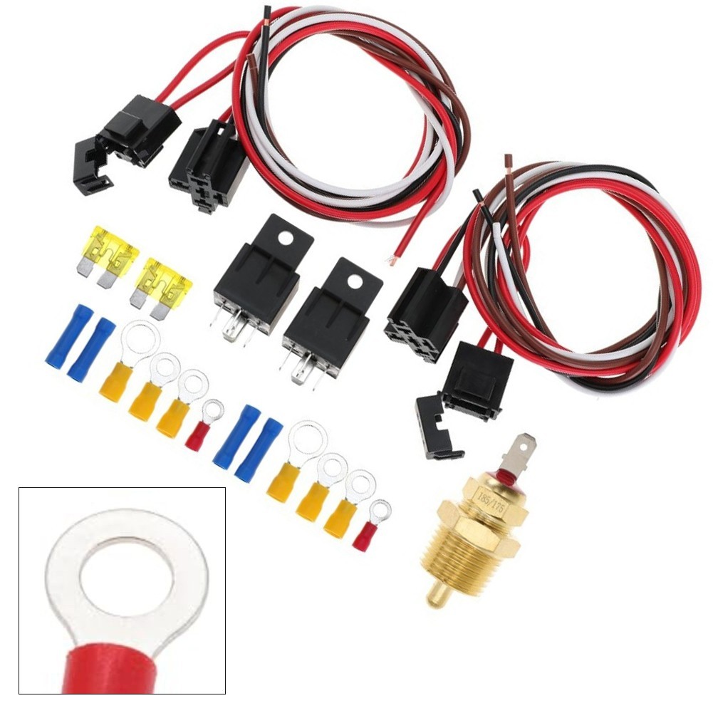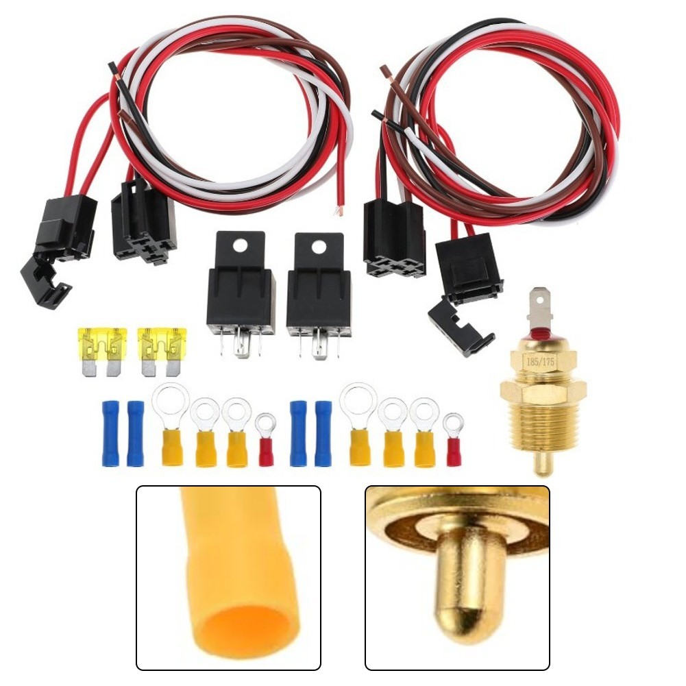 Dual Electric Fan Relay Kit 40A with Temperature Sensor for Automotive Fans