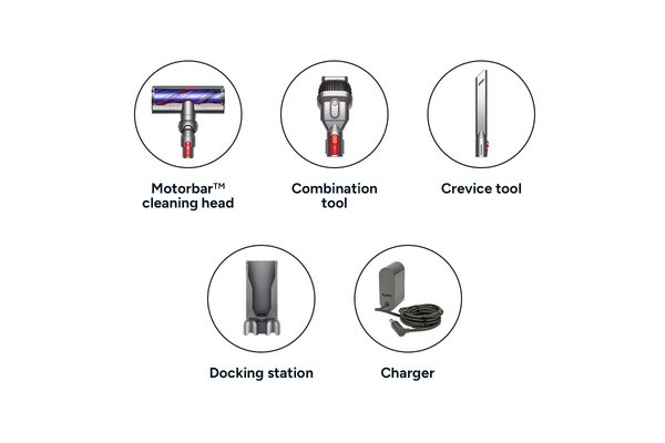 Charger, Combination tool, Crevice tool, Motorbar cleaner head, Wall dok