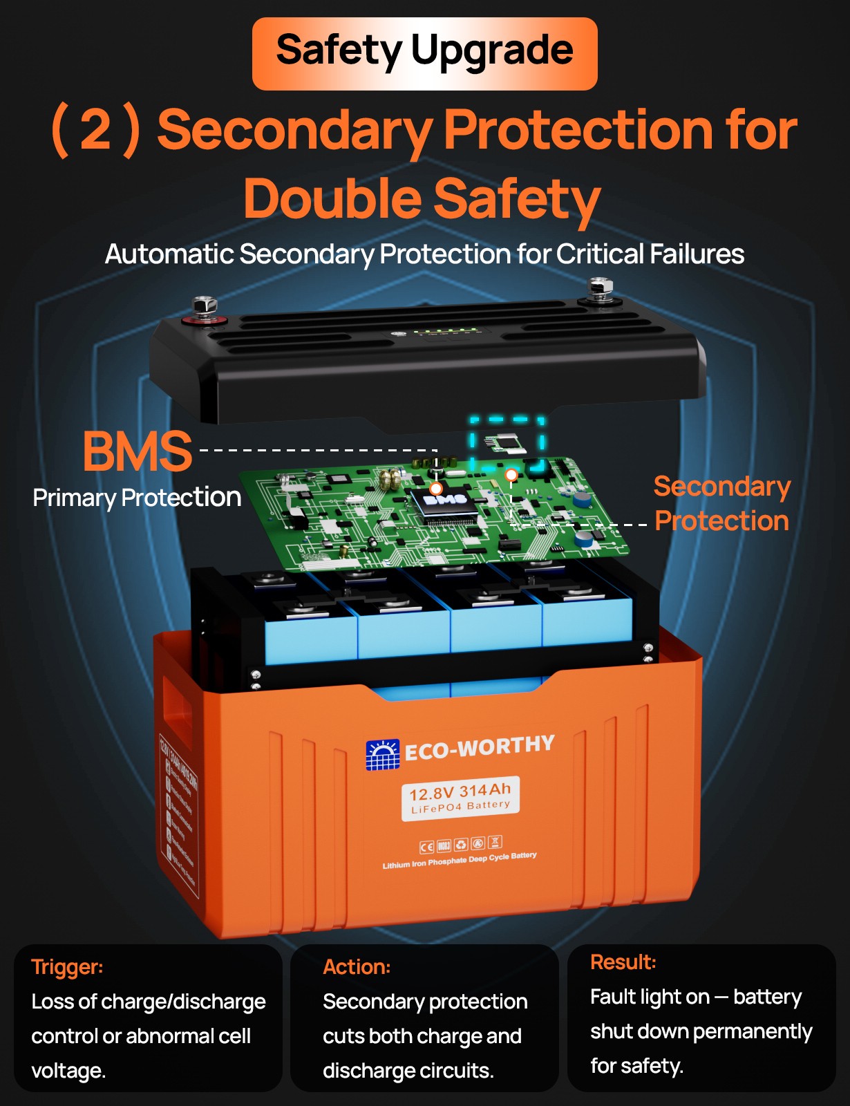 ECO-WORTHY 12V 314AH 4019Wh LiFePO4 Lithium Battery With SOC Display Bluetooth