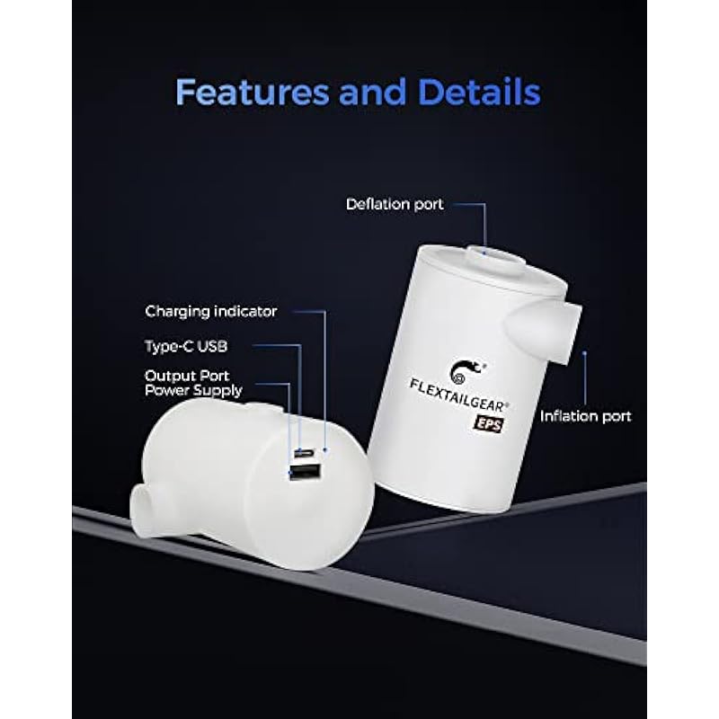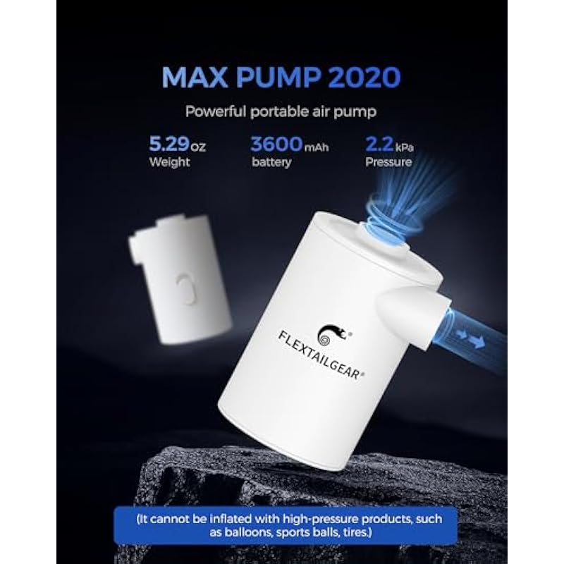 FLEXTAILGEAR Portable Air Pump with 3600mAH Battery Rechargeable Pump with Mobile Phone Charger -Quick Inflate Deflate for Air Mattress, Air Bed, Pool Toys, Floats, Swimming Ring, Vacuum Bags