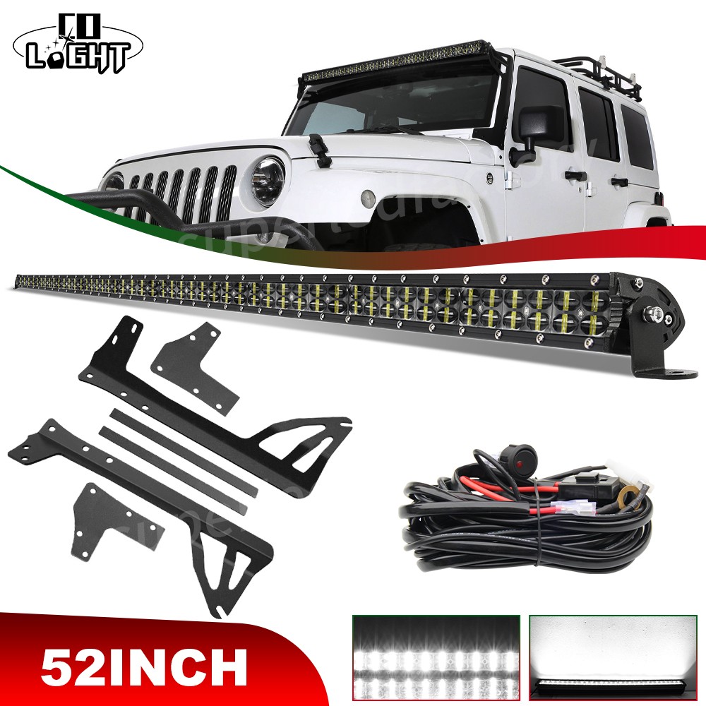 For Jeep Wrangler JK JL Bumper 52″ Dual Row LED Light Bar Combo + Bracket + wire