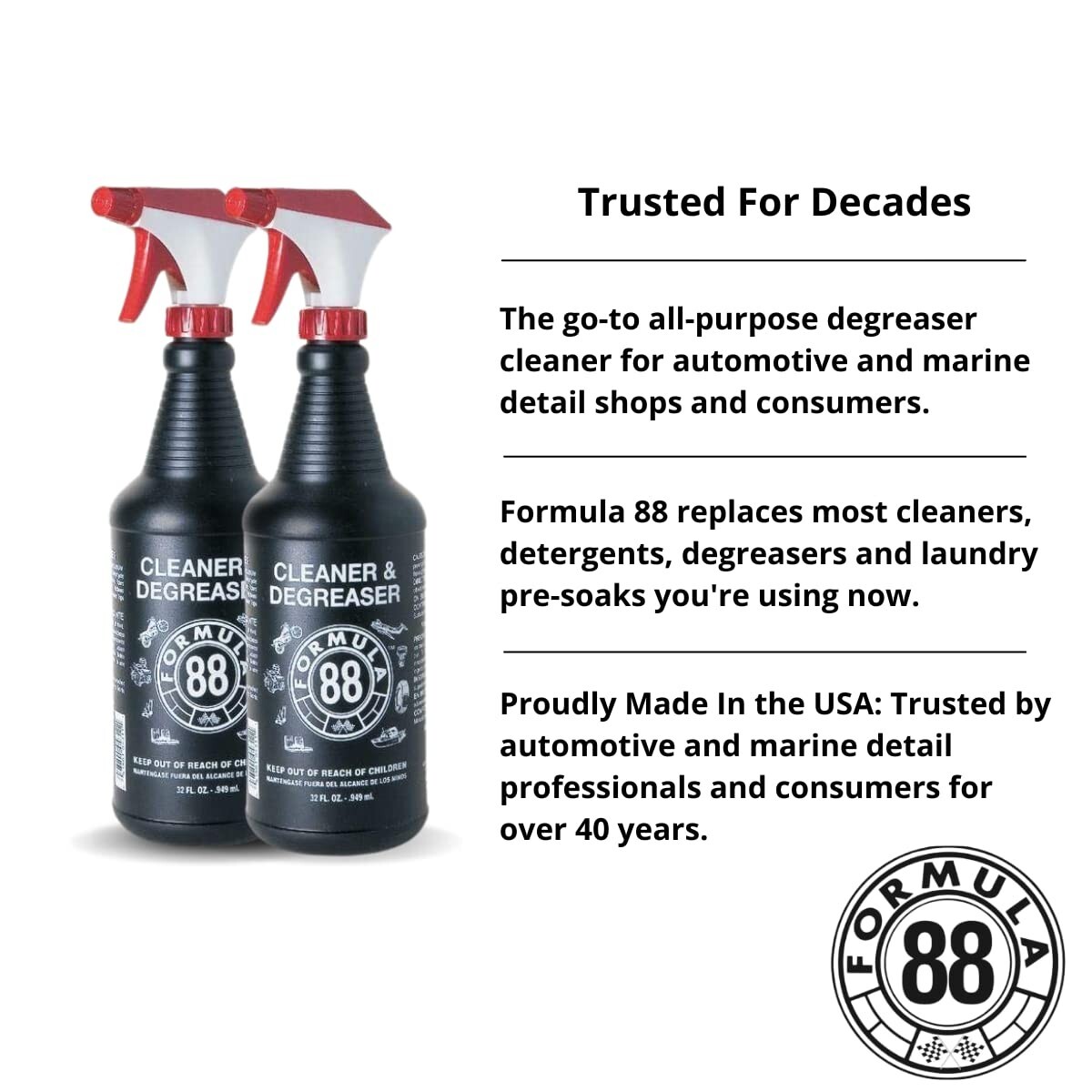 FORMULA 88 DEGREASER & CLEANER 32 Oz Each (2 PACK) Multi Surface Car Cleaner.