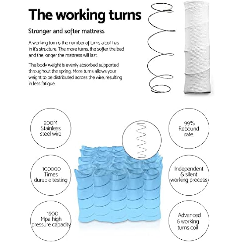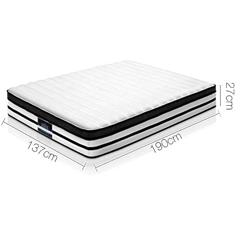 Giselle Bedding Double Mattress Bed Foam Mattresses 27cm Thickness, with 5-Zone Pocket Spring System and Breathable Euro Top, 5Yrs Warranty, Medium Firm, White + Blackwith Vacuum Packed