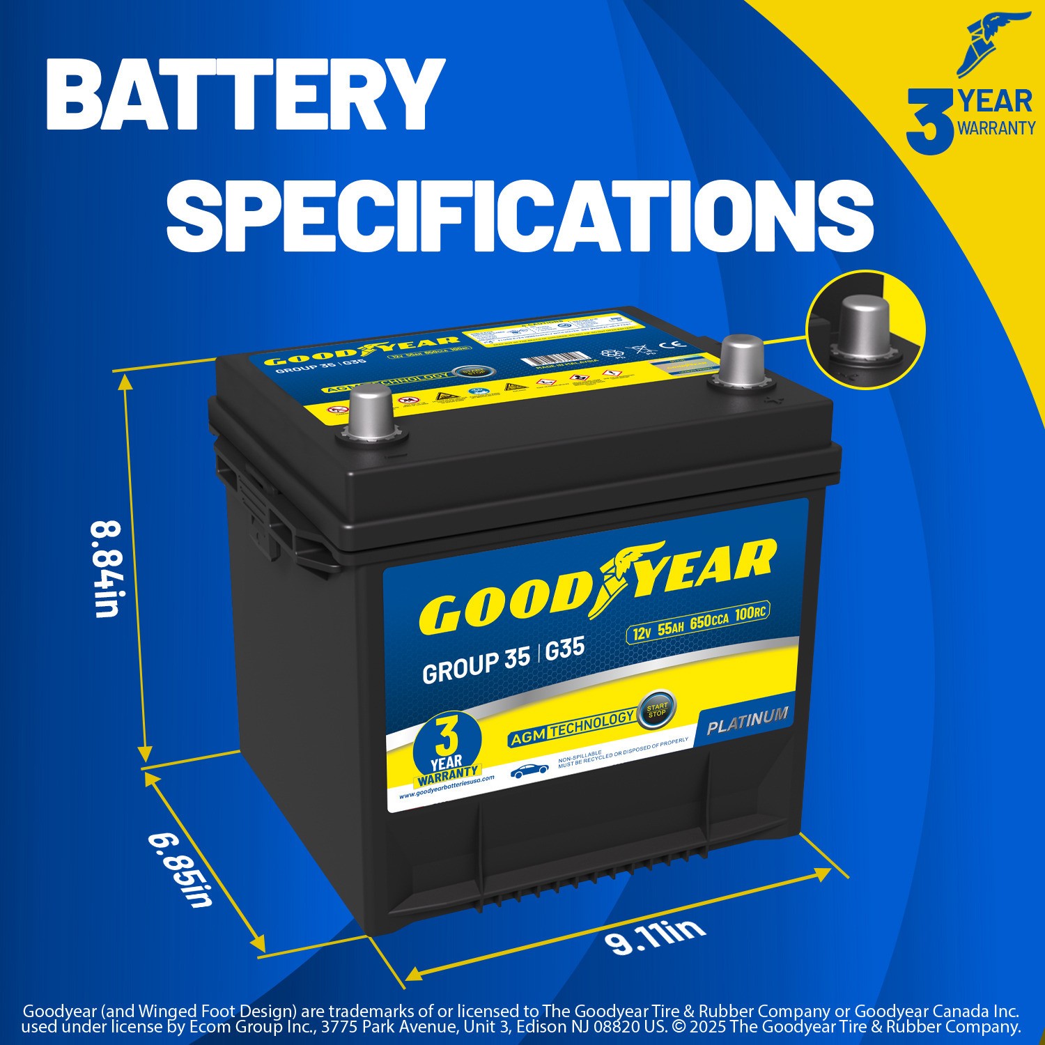 Goodyear Group 35 12V 55 AH, 100RC, 650 CCA Platinum AGM Automotive Battery
