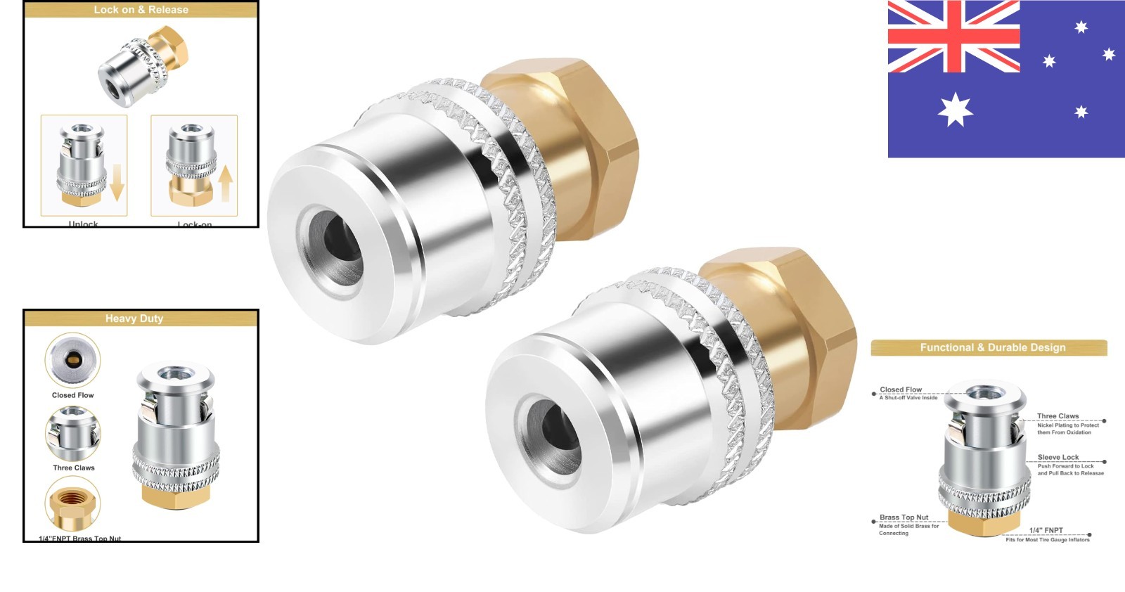 Hands-Free Lock-On Air Chuck Set – Essential Brass Tire Accessories, 2 Pack