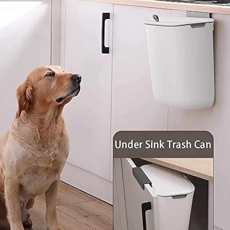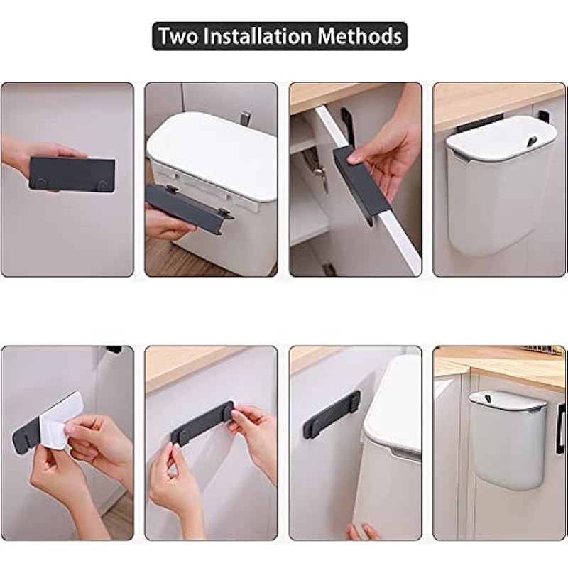 - Hanging and Wall-mounted Design: The waste bin can be hung on the kitchen cabinet door or attached to the wall with sticky hooks. Don’t need to bend over to discard items. You can use it as an under-sink kitchen trash can, a countertop compost bin, a wall-mount trash can. (The thickness of the cabinet door is less than 0.95 inches / 2.5cm) Don’t worry about a naughty dog or other pets turning over the trash can