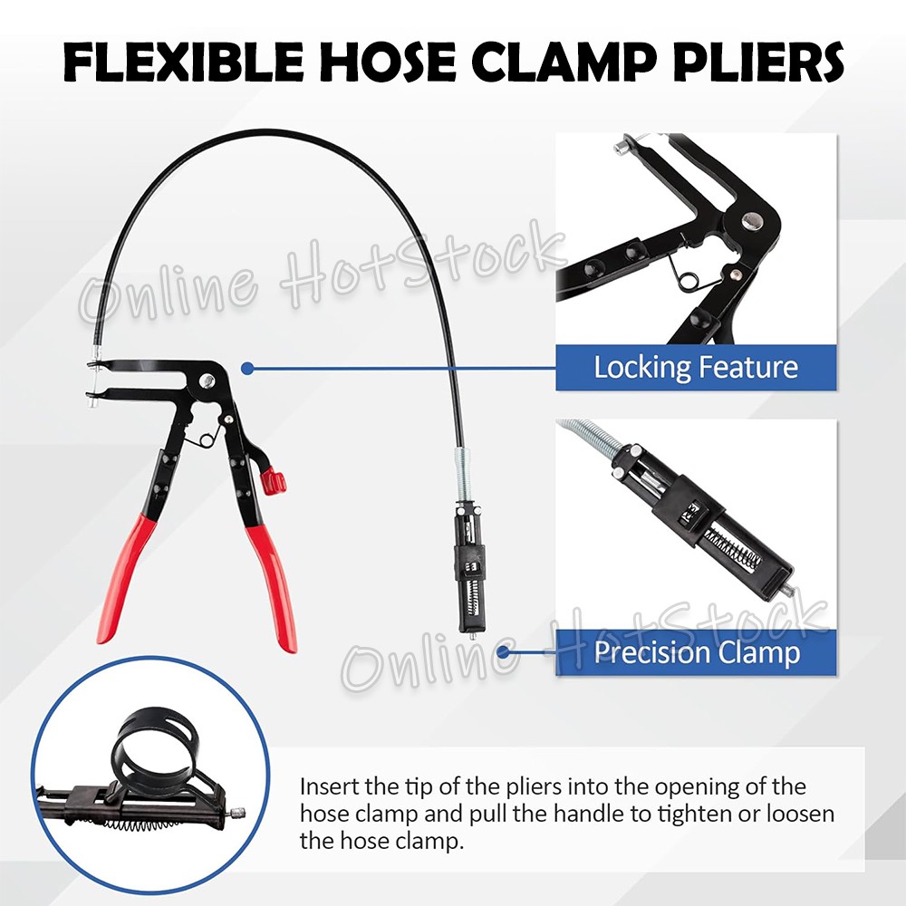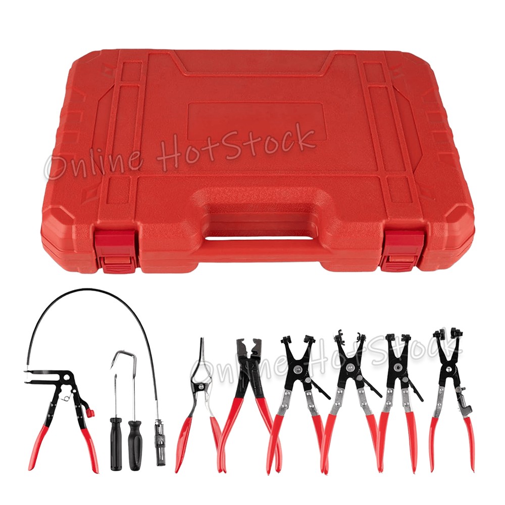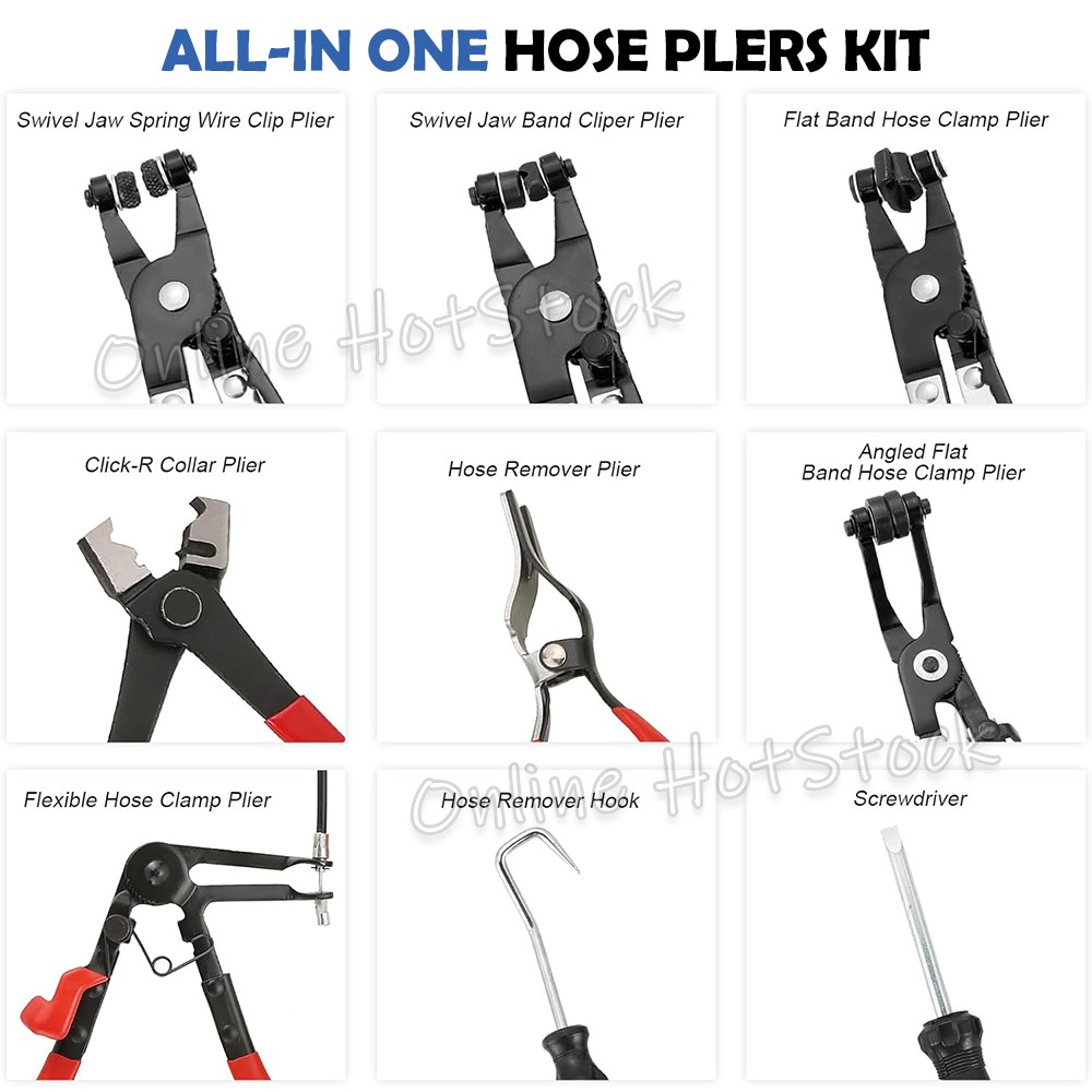 Hose Clamp Pliers Kit Clip Remove Set Swivel Jaw Flat Angled Automotive 9-Piece