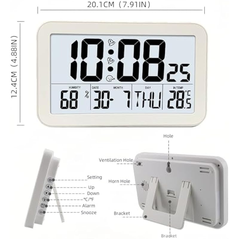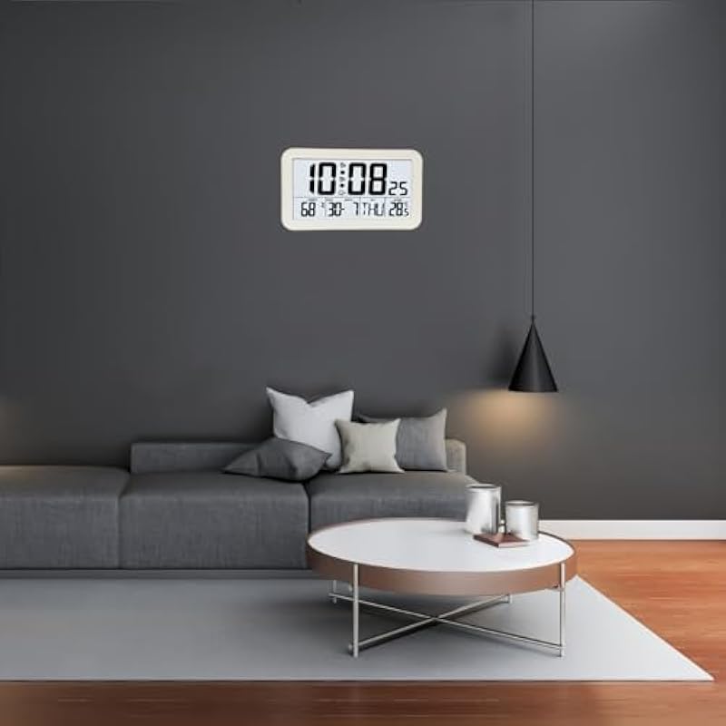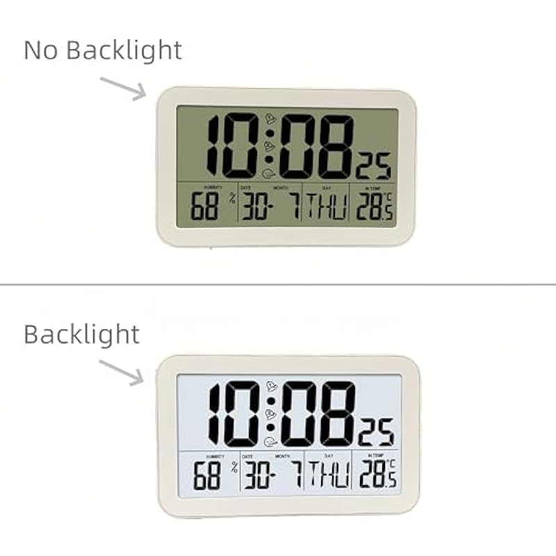 Lancoon Digital Alarm Clock with Snooze, Temperature & Humidity Date & Week LCD HD Large Screen Display, Multiple Colors, Battery Powered for Bedroom Living Room
