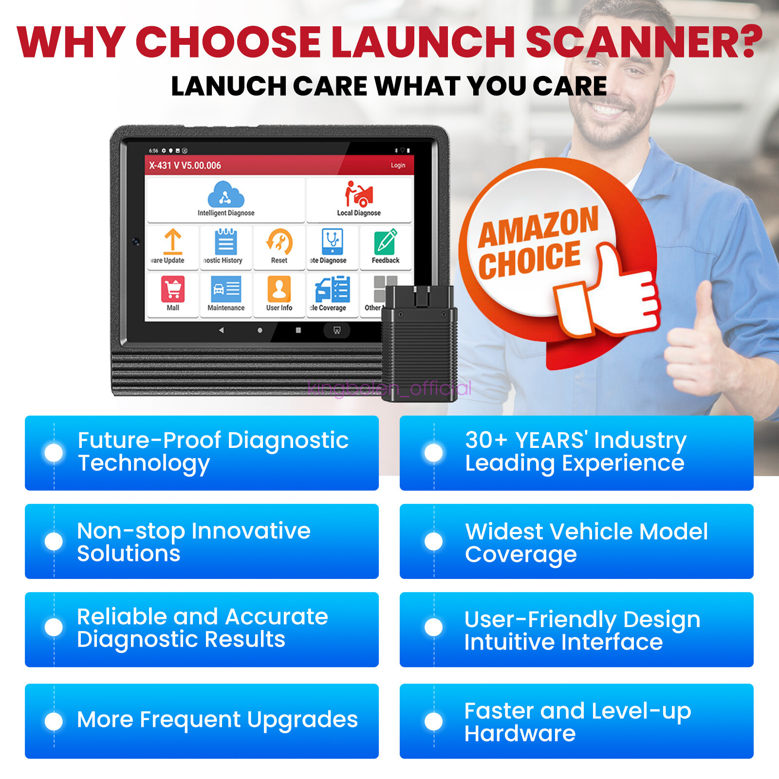 Backlit Display, Built-In Battery, Check Engine Light Shut Off, Color Display, Erases Codes, Freeze Frame Displays, Internet Updateable, LCD Display, Multi-Language Interface, User Friendly