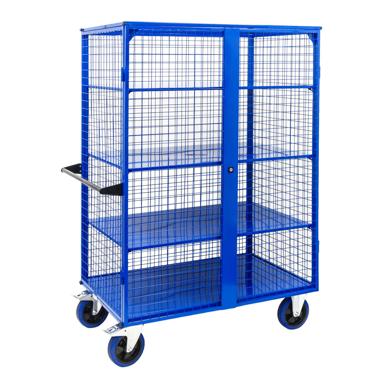 Lockable Mesh Cage Trolley (With Sheet Metal Shelves)