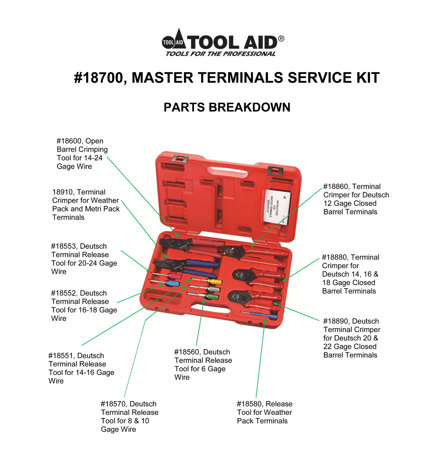 MASTER DEUTSCH TERMINAL SERVICE KIT – release tools, crimpers, automotive tool