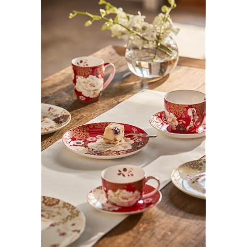 Maxwell & Williams Kimono Breakfast Cup and Saucer Gift Box, Red, 480 ml Capacity