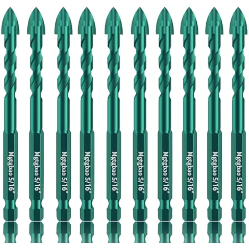 Mgtgbao 10pc 5/16”Ceramic Tile Drill Bit,8MM Masonry Drill Bits Concrete Drill Bit Set for Tile,Brick, Plastic and Wood,Tungsten Carbide Tip Best for Wall Mirror.