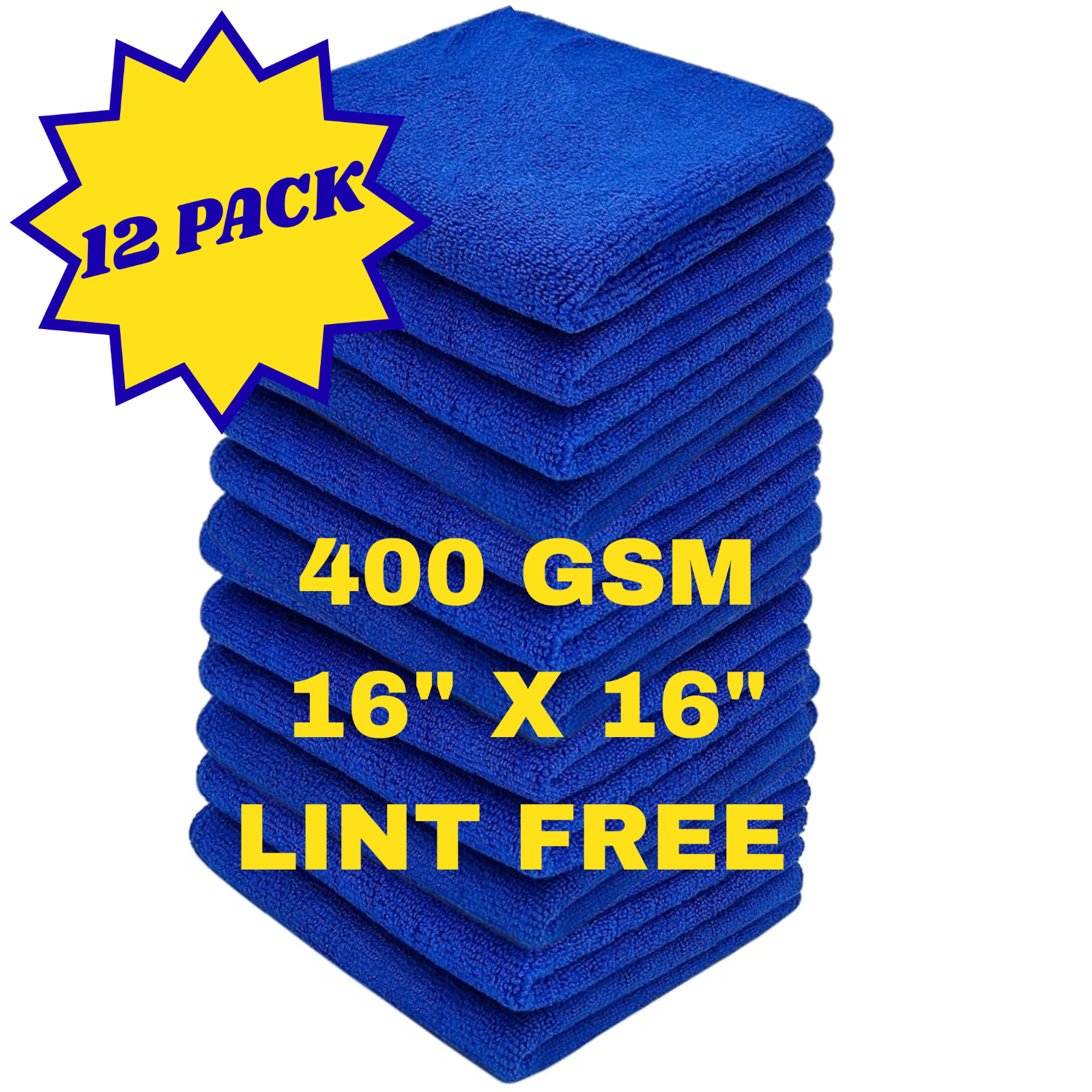 Microfiber Cleaning Cloth 16×16 Car Polishing No Scratch Detailing 12 Pac 400GSM