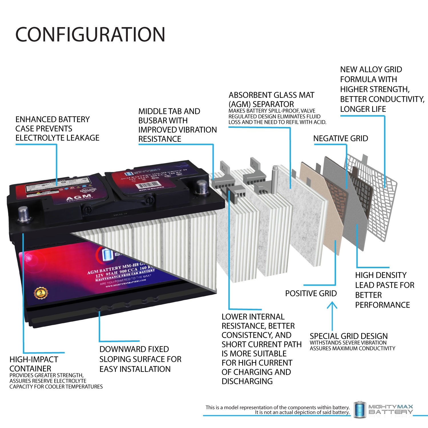 Mighty Max Battery MM-H8 BCI Group 49 12V 95Ah, 160RC, 900 CCA AGM Car battery