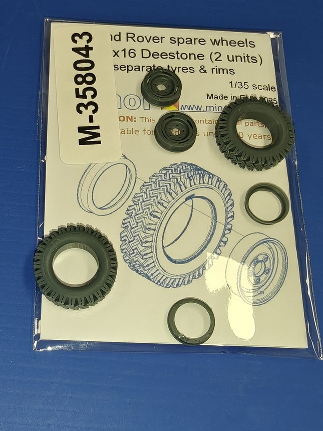 Minor 1/35 Land Rover 7.50×16 Deestone Spare Wheels with Separate Rims (2pcs)