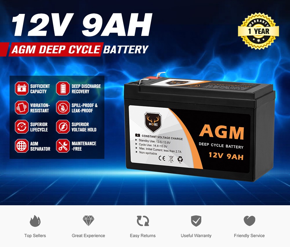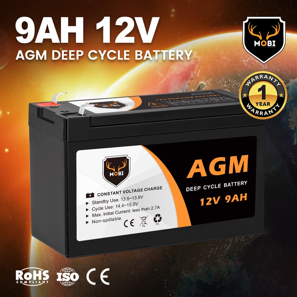 MOBI 9AH 12V AGM Deep Cycle Battery Camping Marine 4×4 4WD Solar Power Bank