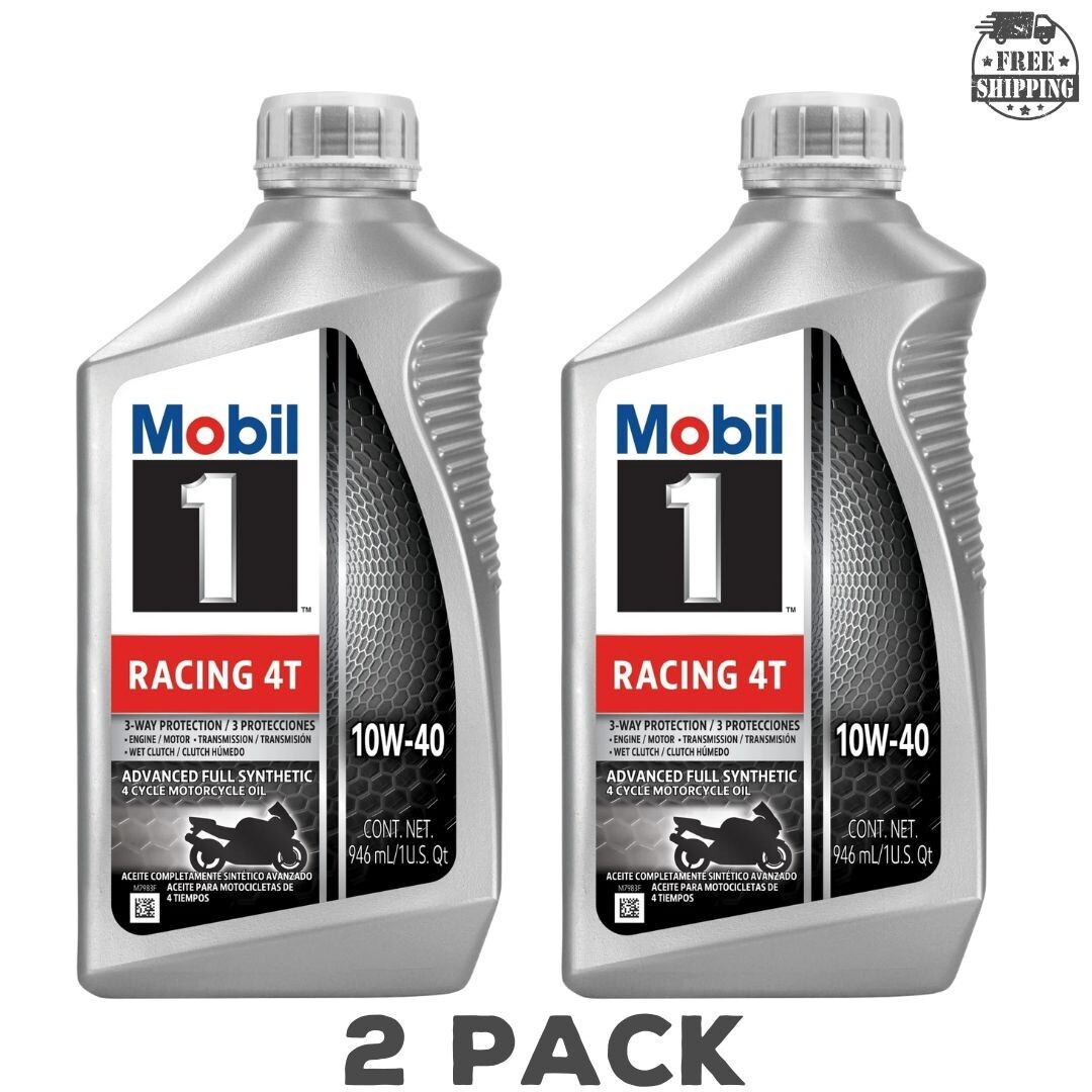 Mobil 1 Racing 4T SAE 10W-40 Advanced Full Synthetic Motorcycle Engine Oil 2PACK