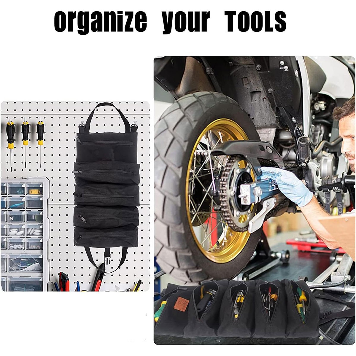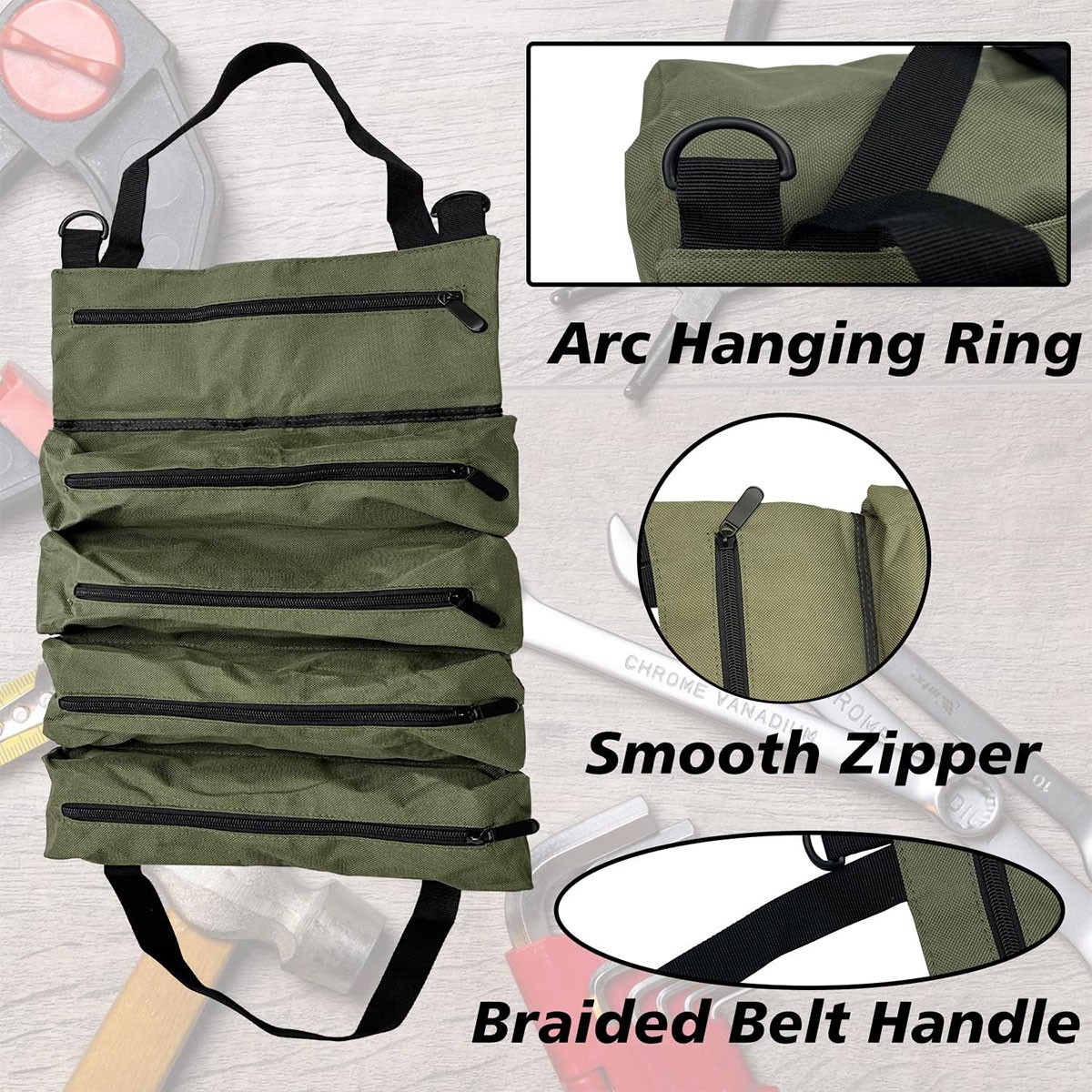 Multi Purpose Tool Roll Up Bag Wrench Roll Pouch Hanging Tools Storage Organizer