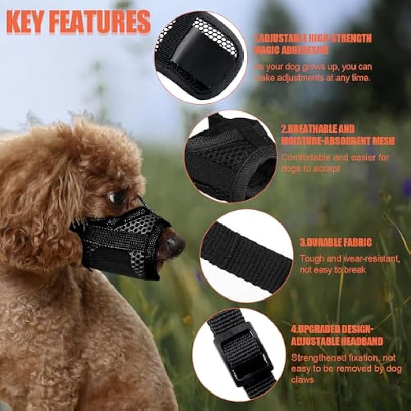 Muzzle for Dog, Soft S Pet Mesh Muzzle with Stable Head Bar Design Dog Anti Barking Muzzle Dog Muzzle to Stop Chewing, Keeping Quite in Public Dogs Gift (Black)