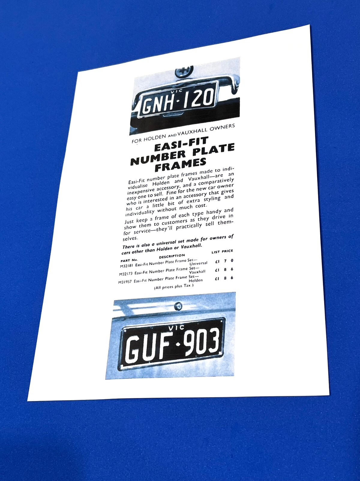 NASCO HOLDEN EASY-FIT NUMBER PLATE FRAMES ALLOY ACCESSORY ADVERTISEMENT FE FC FB