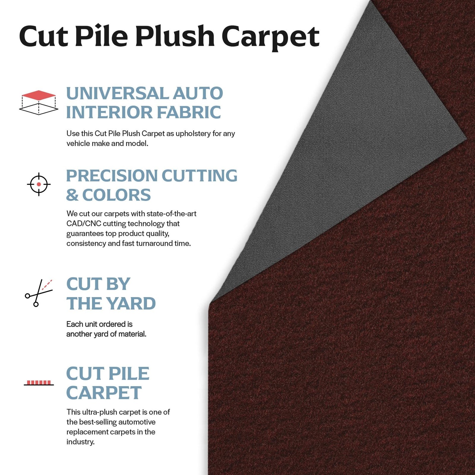 Newark Auto Automotive Cut Pile Plush Carpet, Car Upholstery for Floor Mats, …