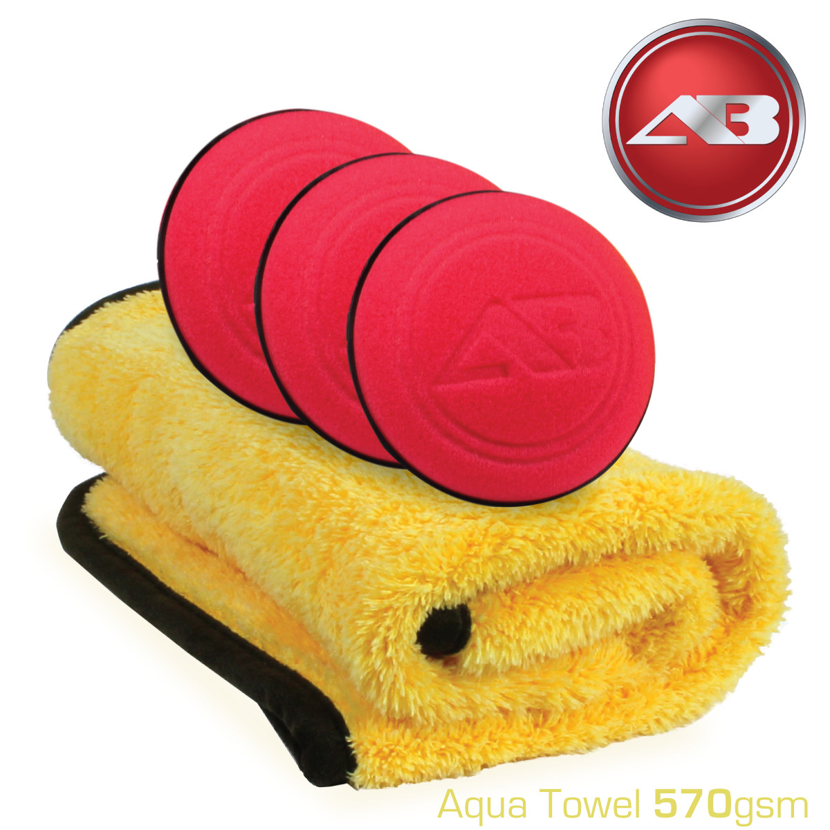 Plush Microfibre Drying Towel 570gsm 40s40cm 3 Wax Applicators Car Detailing