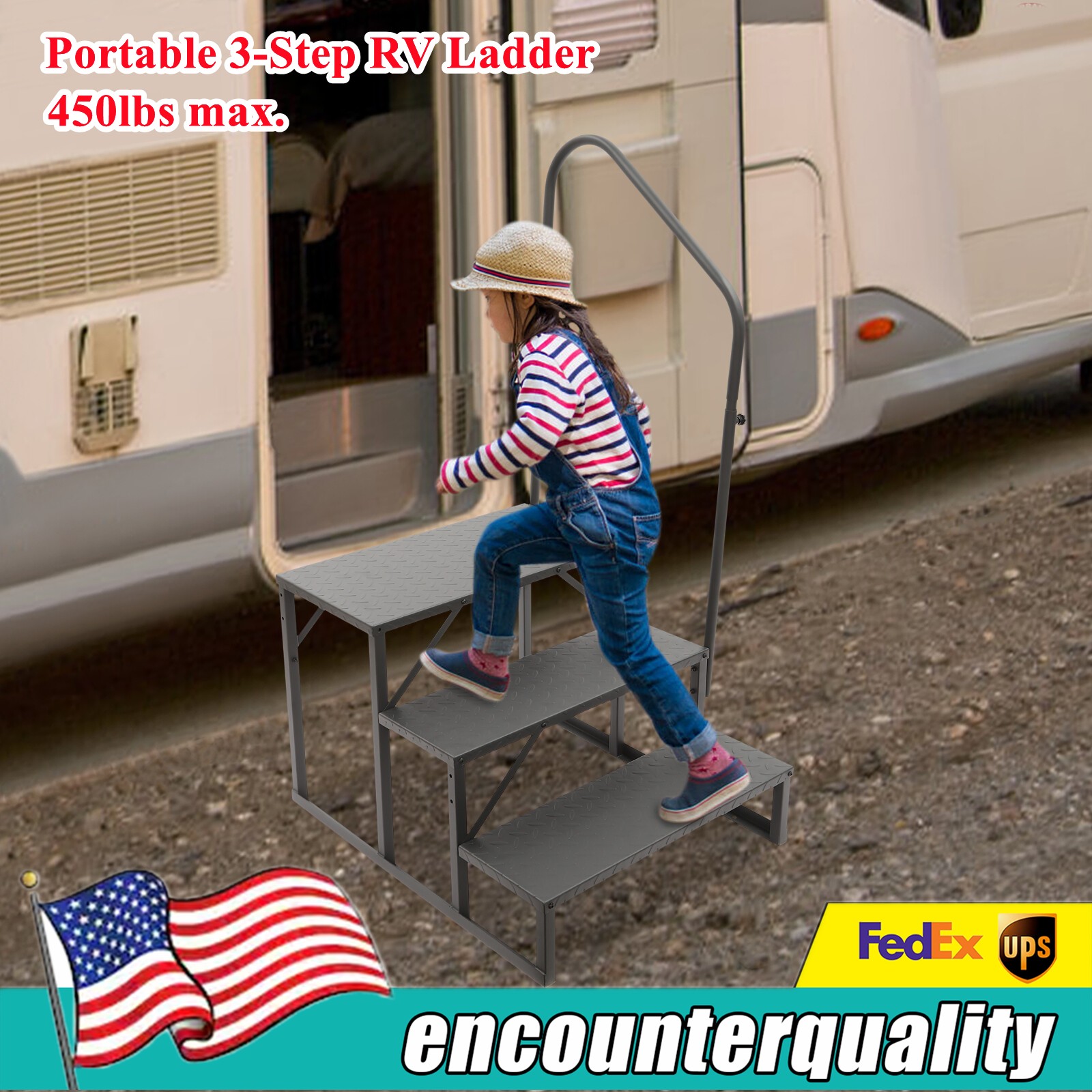Portable 3 Step Ladder Caravan Camping Rv Accessories Ladder Max Load 450lbs