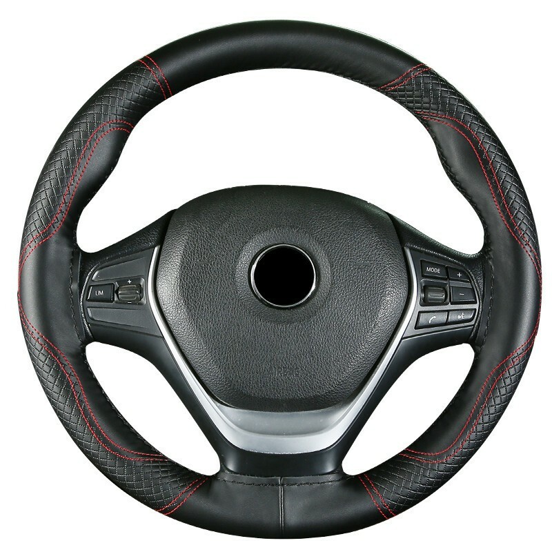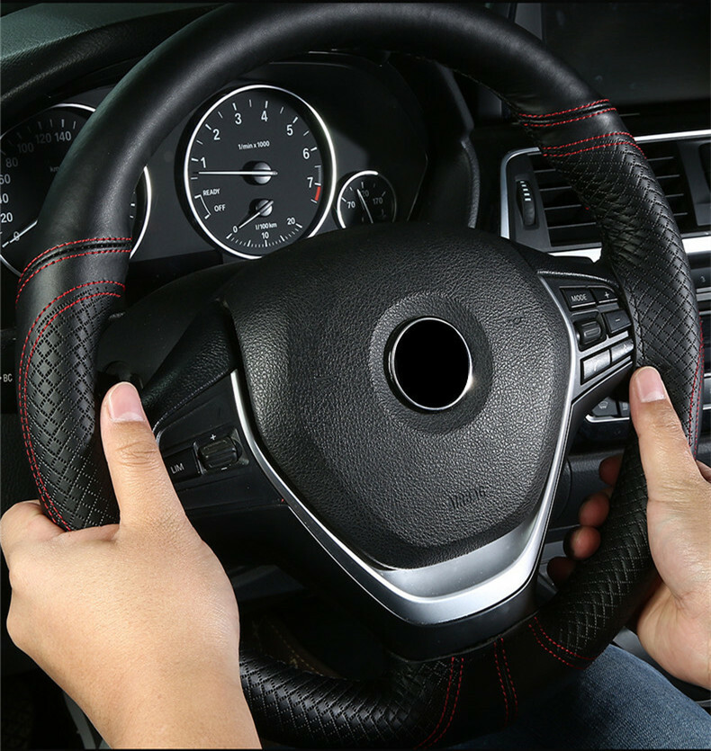 Premium Genuine Leather DIY Car Steering Wheel Cover Auto Protection Needle 38cm