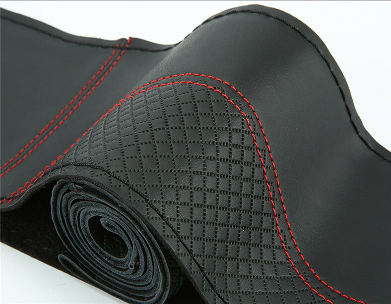 Premium Genuine Leather DIY Car Steering Wheel Cover Auto Protection Needle 38cm