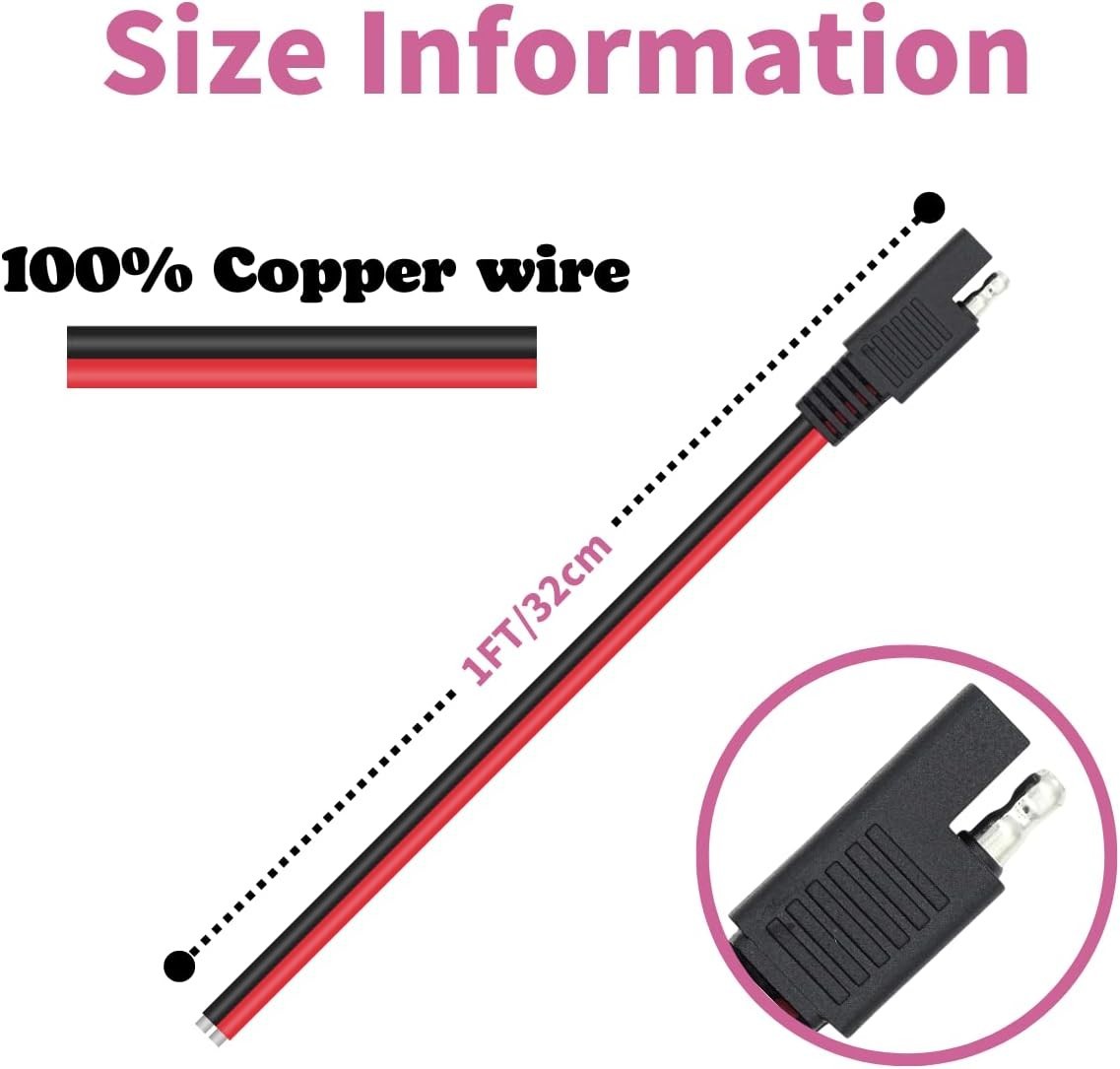 Red/Black SAE Connector Extension Cable, 1FT Quick Disconnect Wire for Easy Use