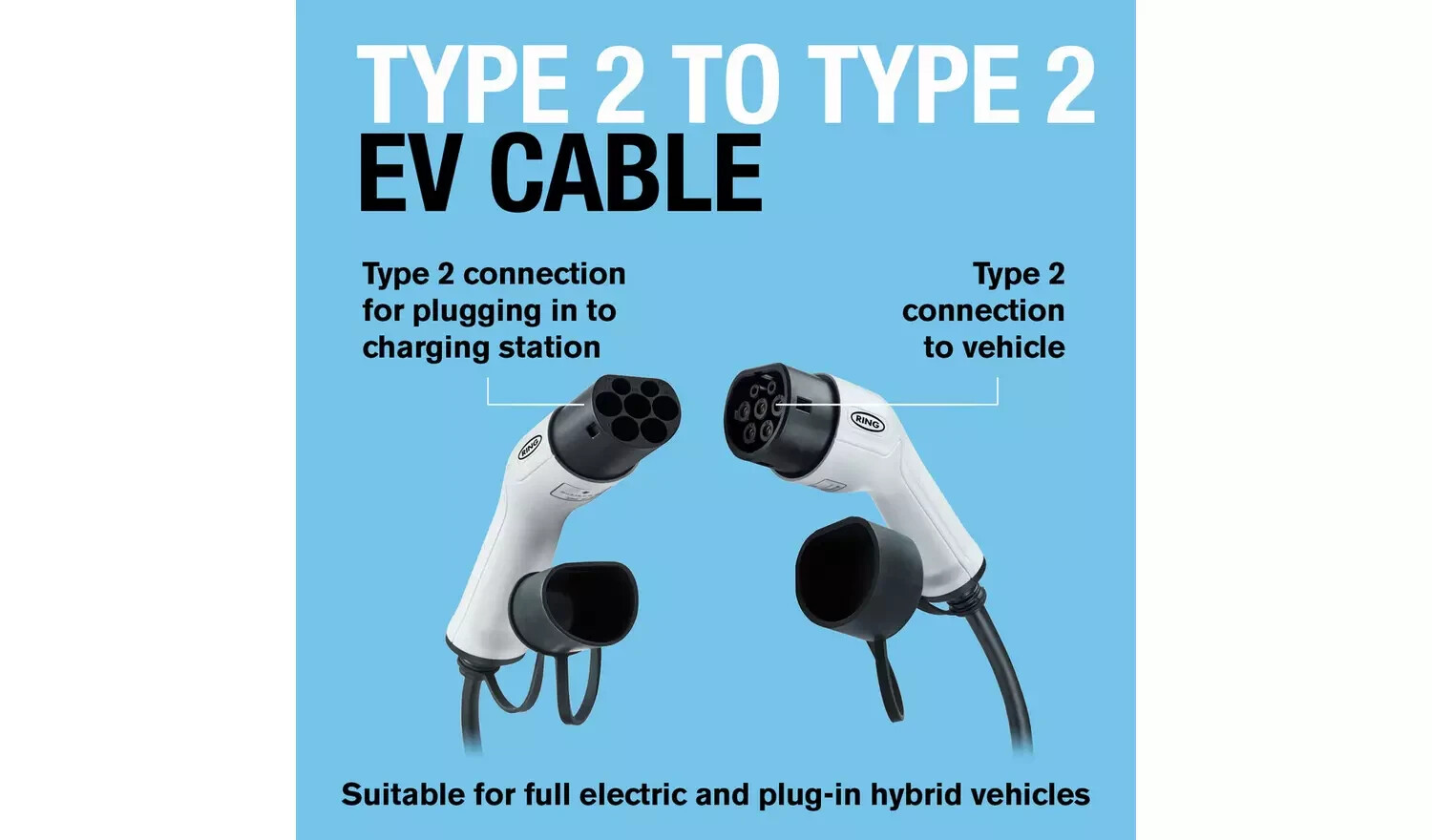 Ring Type 2 to Type 2 Single Phase 16A 5m EV Charging Cable – RCC21605 – NEW