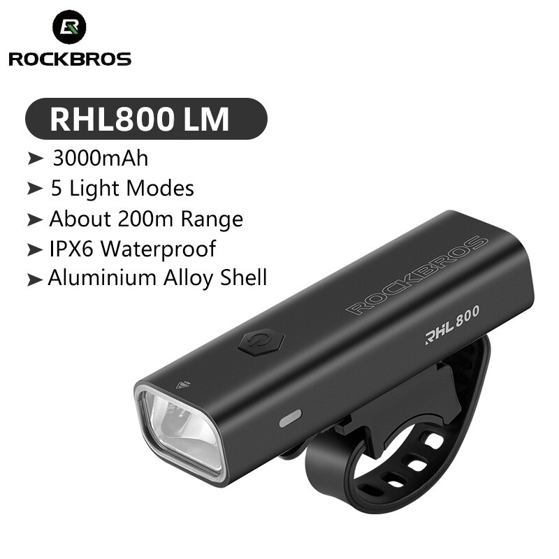ROCKBROS LED Bike Light Front Bicycle Headlight Waterproof USB-C Rechargeable